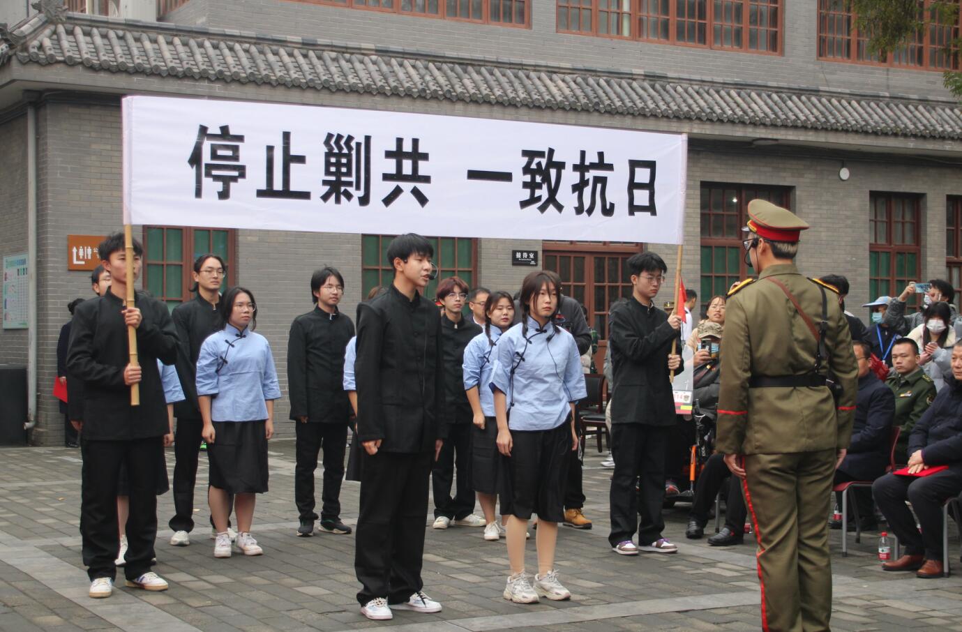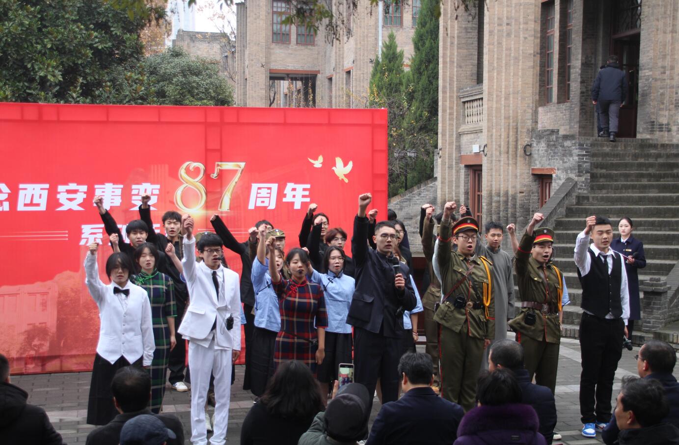 今年是西安事变87周年,为深入开展学习贯彻习近平新时代中国特色社会主义思想主题教育,进一步引导青年学生铭记光辉历史、传承红色基因,12月12日由英国上市官网365志愿者赴张学良公馆旧址参加了纪念西安事变87周年系列活动,义演了话剧《双十二事变》,再现了八十七年前轰动全国的张学良、杨虎城将军劝谏蒋介石停止内战、一致抗日的历史事件,话剧演出现场不时传来观众的掌声和叫好声。
