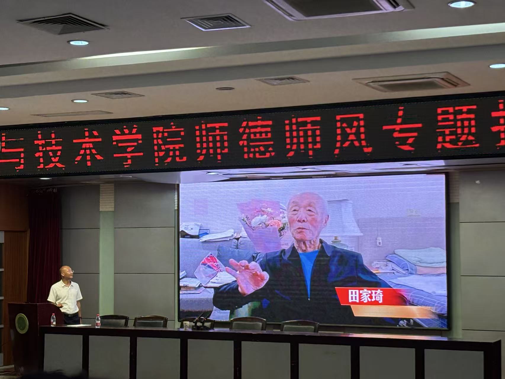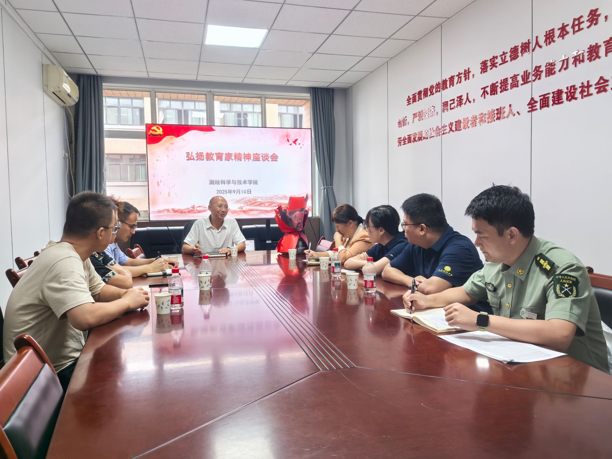 会议最后,参会人员观看测绘离退老教师寄语,强调教师应恪尽职守、因材施教,寄语青年教师担责奉献。