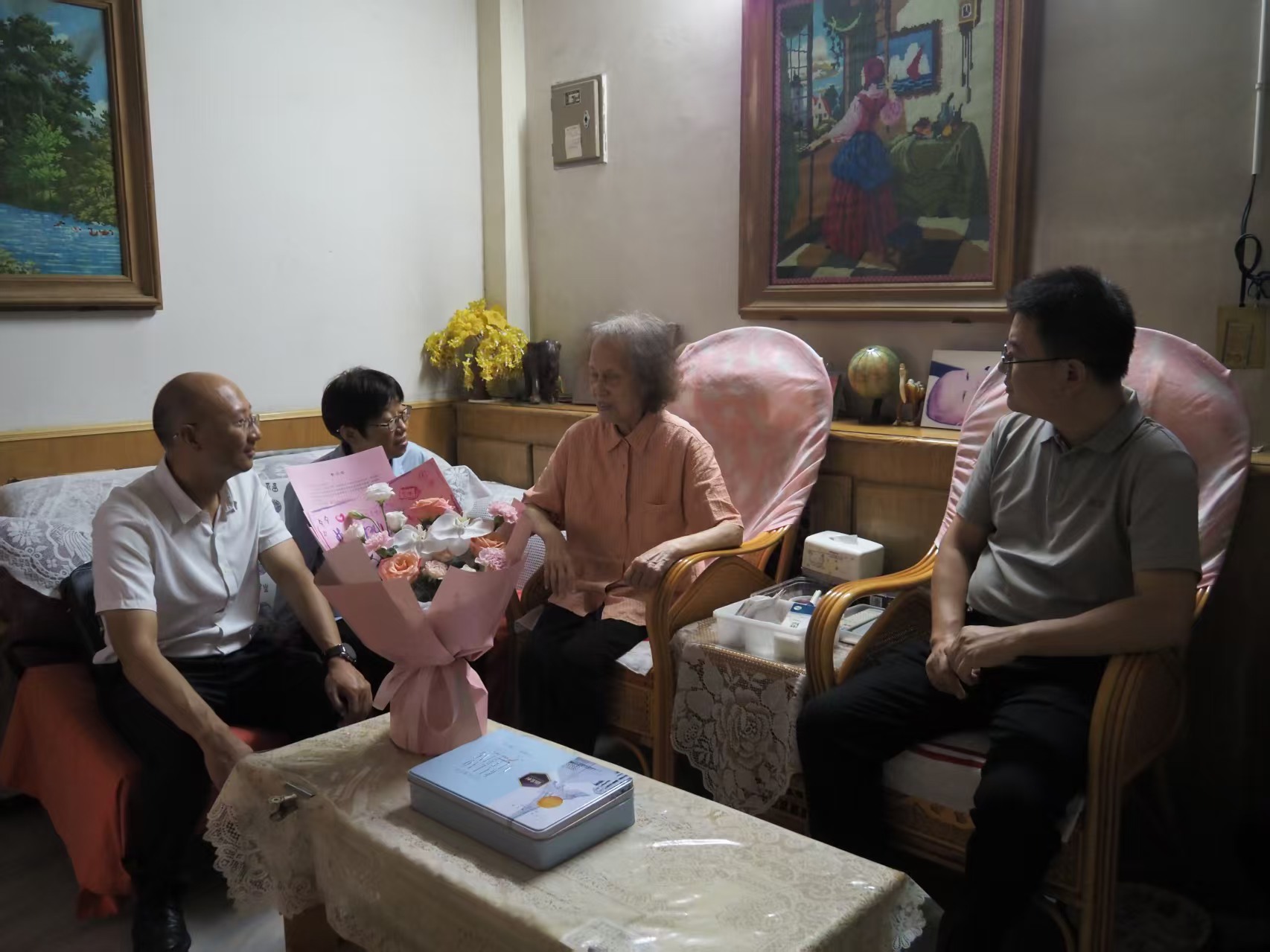 9月9日,学院领导班子代表全院师生,看望慰问了杨作勋、蒋芷华、陈君翊、陈月华、何新义、田家琦、梁明、陈晓宁等10位离退休老教师,向老教师们转达了全院师生的祝福和问候。老教师们赞许了师生持续团结拼搏奋斗精神和学院建设发展取得的成绩,寄语师生弘扬教育家精神,传承学院吃苦耐劳、精益求精、严谨治学、关爱学生等优良传统,祝愿学院教育事业更上一层楼。