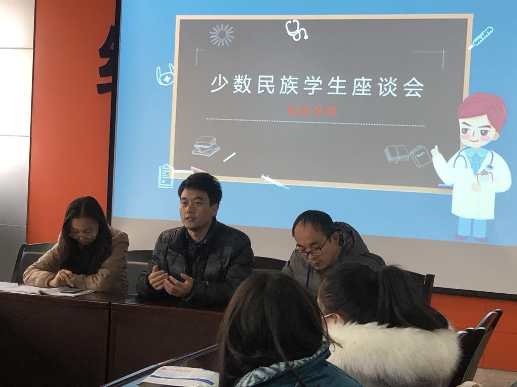 学工办主任吴映曈首先向学生介绍了学院的基本情况,表达了对少数民族学生的关心,并表示学院会尊重和考虑少数民族同学的民族习惯,为同学们的健康发展积极营造氛围、创造条件、搭建平台。座谈会上,少数民族同学代表一一发言,交流了在学校的学习、生活情况,学生们纷纷表示,在校期间,学习和生活各方面都比较满意。最后,少数民族学生教育管理联络人郭江波代表学院向所有学生赠送了爱心口罩,希望同学们保持身体健康、合理利用在校时间努力提升自我。