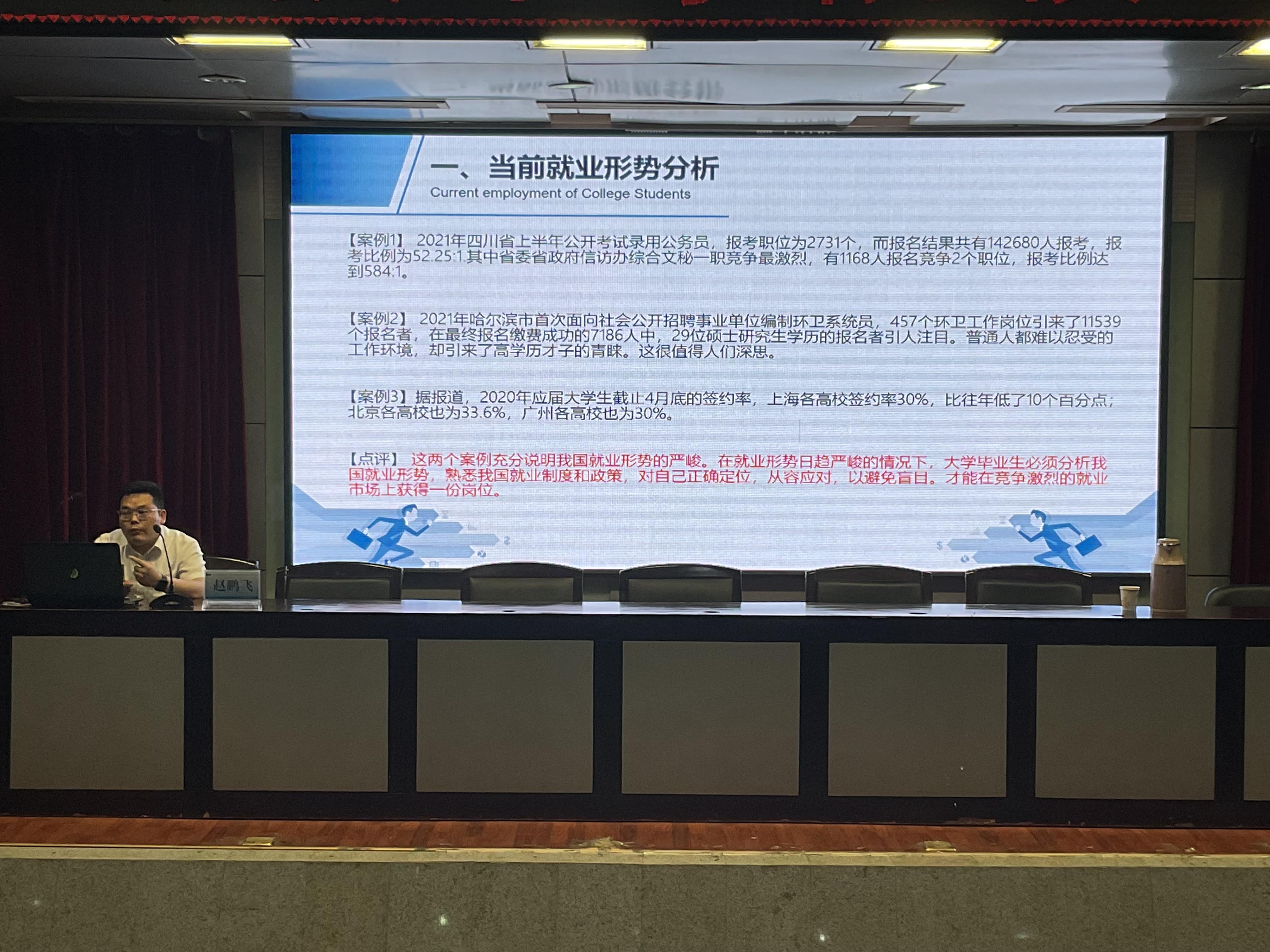 报告会上,赵鹏飞从企业招聘的角度介绍了2022届毕业生就业状况,深度分析了2023届毕业生面临的严峻就业形势,罗列了毕业生就业期间普遍存在的问题,讲解了产生问题的原因,并向学生们传授了求职面试应掌握的方法技巧。最后,解答了大家普遍关心的就业问题和思想困惑,勉励同学们认清形势,明确就业方向与职业定位,增强信心,积极转变就业观念,抓住机遇,主动求职应聘,通过自己的努力实现就业。