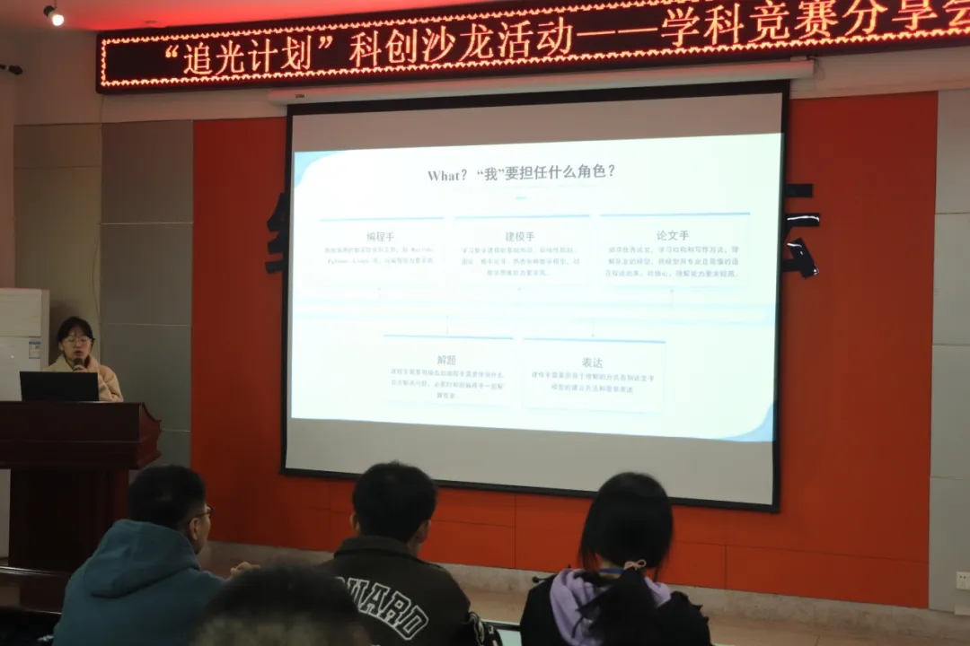 为加强同学们对学科竞赛的认识,提升学生的学科素养,英国上市官网365双创中心于10月23日组织开展了“追光计划”科创沙龙活动——学科竞赛分享会。活动邀请了21级本科生王新磊和22级本科生侯雨彤为同学们进行经验分享。本次活动英国上市官网365共计100余人参加。