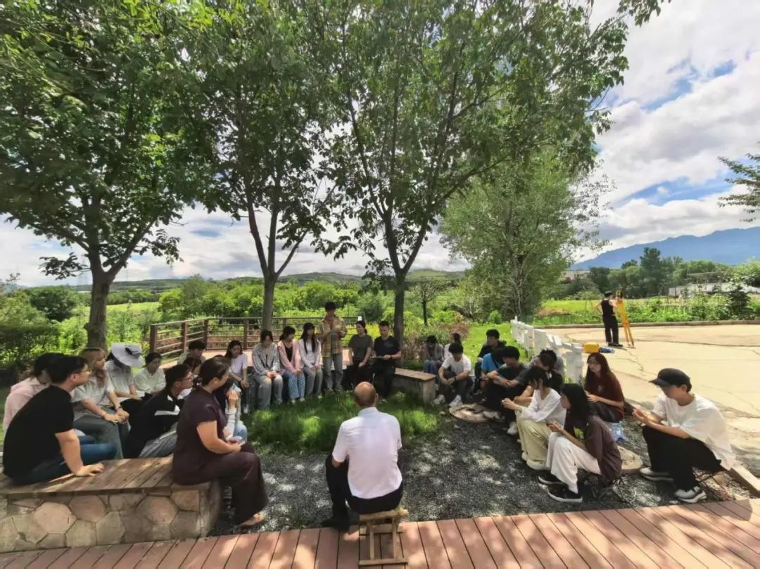 适逢学校组织实践教学基地走访活动,面对同学们热切的目光,学院党委书记戴开文指着远处的一片核桃树说:“同学们,那片核桃树下阴凉,远方是大好河山,我们在那里开展一次微党课,来看看你们丈量山河间的思考,来聊聊测绘青年的使命与担当。”