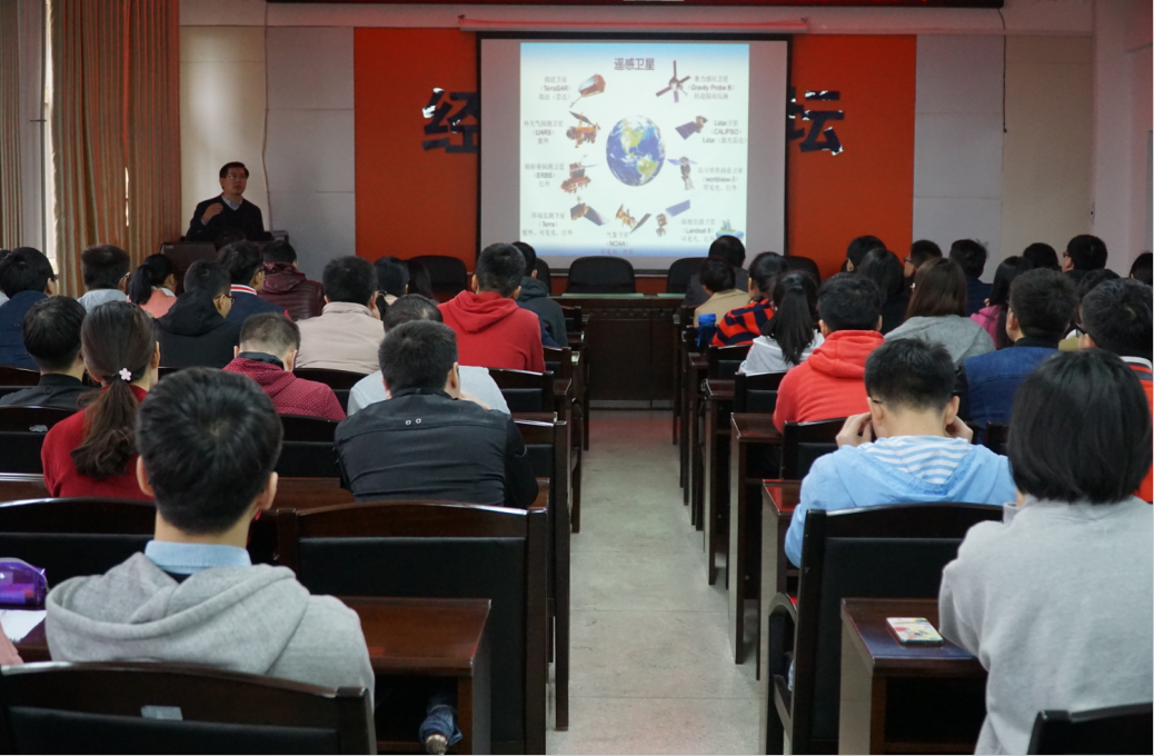黄波针对卫星遥感系统的分辨率制衡问题,介绍了他提出的全属性(时-空-谱-多角度)一体化遥感影像融合方案,以较低成本解决了遥感影像分辨率问题,并将成果应用于土地覆盖分类、PM2.5环境监测、城市扩展的土地变化建模,服务于可持续的城市规划和空间优化问题。报告会后,遥感系教师就研究方向、遥感教学等与黄波进行了交流,学生向黄波咨询了融合方法具体实现需要注意的问题,以及到香港中文大学攻读硕士研究生等相关问题。