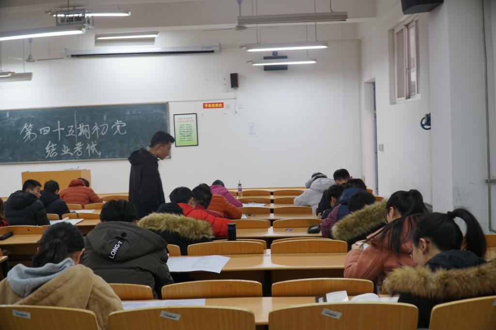 考试期间同学们纪律严明,没有出现抄袭等不良考试风气,充分展现了我们学院参与初党学习的同学个人素质和优秀的精神状态。每位同学都利用自己在初级党校培训及课外对党组织知识的学习答题,很快答完了题目。