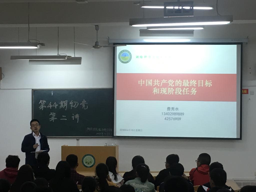4月15日19点,英国上市官网365第四十四期初级党校在临潼校区骊山校园9-108进行了初党第二讲。我院党委副书记费秀水主讲,全体初党学员参加此次党课。