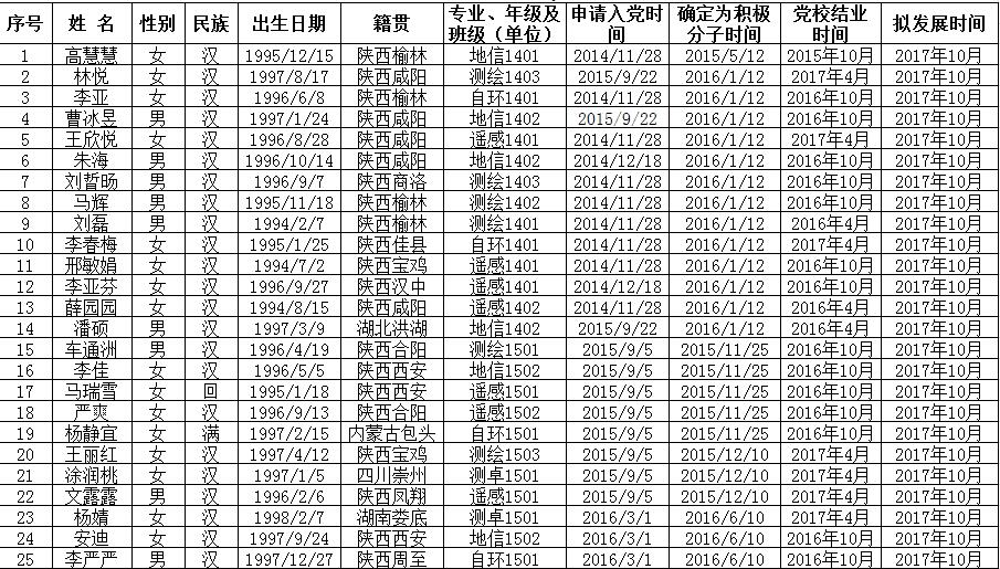 根据我院本年度发展计划,经各团支部推荐、支部大会讨论及学院讨论研究决定,现将下半年拟发展党员名单公布如下: