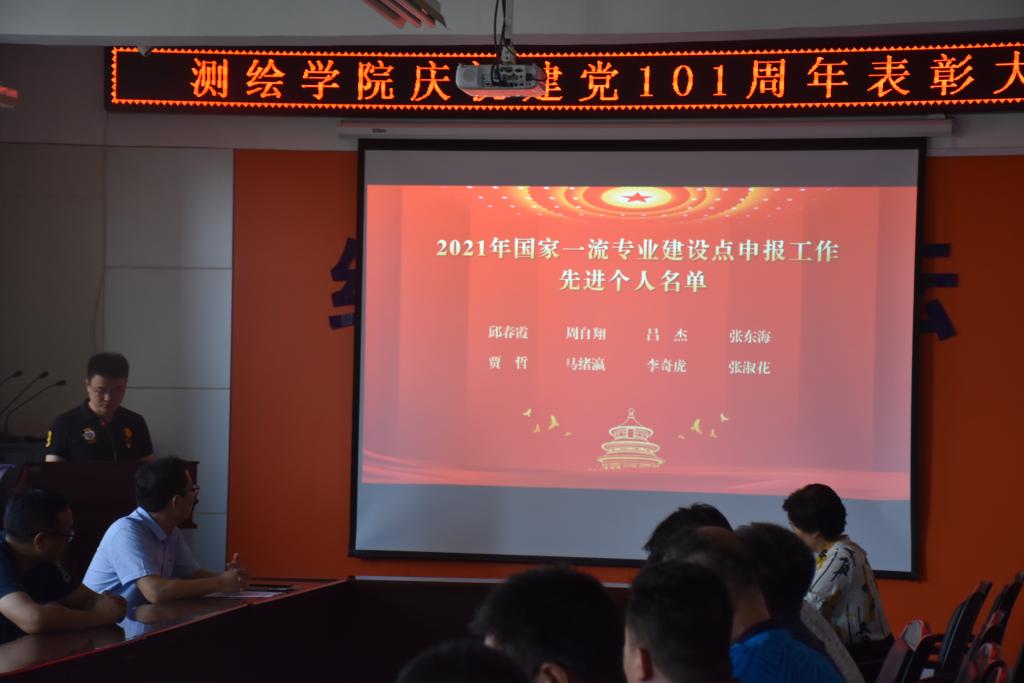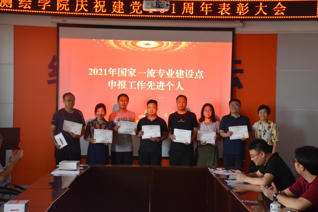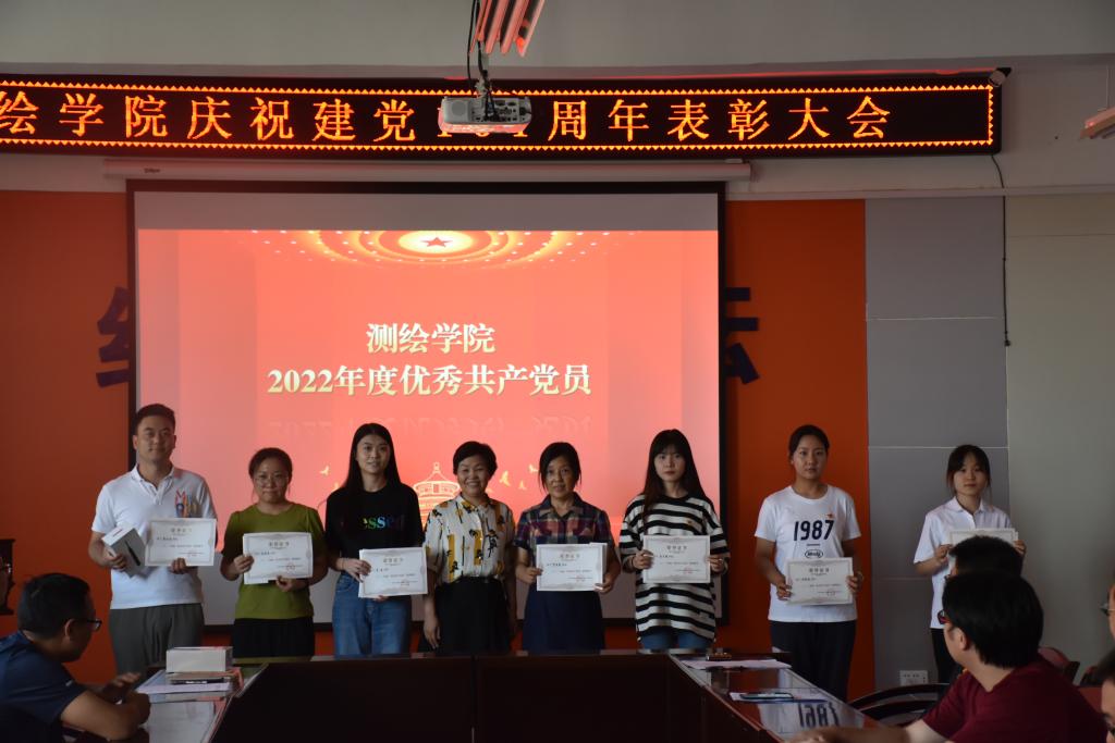 首先在党委书记殷屈娟同志的带领下,参会党员面向党旗重温入党誓词。党委副书记贾哲、副院长李朋飞先后宣读了学院党委的表彰决定,授予武继峰等21名同志“优秀共产党员”称号;授予吴啸龙等4名同志“优秀党务工作者”称号;授予史晓亮等20名同志为使用“学习强国”学习平台学习先进个人荣誉称号;授予邱春霞等8名同志“2021年国家一流专业建设点申报工作先进个人”荣誉称号。学院党委书记殷屈娟为获得表彰的先进个人颁发了荣誉证书并合影留念。