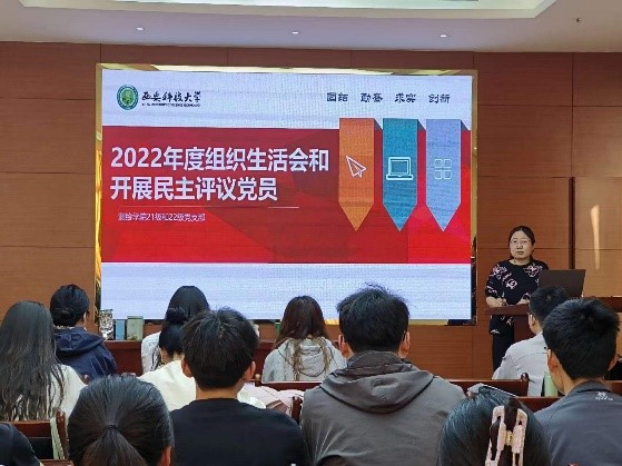 会上,22级党支部宣传委员李青青领学了党的二十大报告中的重点内容,通过会学、会讲、会做这“三会”,对党的二十大报告的核心内涵进行解读。此后,进行了二十大报告的集体视频学习以及党员们轮流发言做批评与自我批评等活动。通过批评和自我批评,使党员同志在民主生活会的过程中,进行深入的自我反省,以客观的角度审视自己发现工作、学习和生活中存在的缺点、过错。党员之间相互指正问题,改正问题。