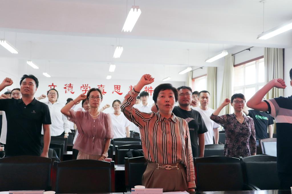 会议在庄严的国歌声中拉开序幕。随后由院党委书记殷屈娟领誓,与会人员共同重温了入党誓词。殷屈娟宣读了表彰决定,授予自然地理与资源环境系党支部等2个支部“先进党支部”称号,授予杨军“优秀党务工作者”称号,授予白晓等26名师生党员“优秀共产党员”称号,并对以上先进集体和优秀个人予以表彰奖励。