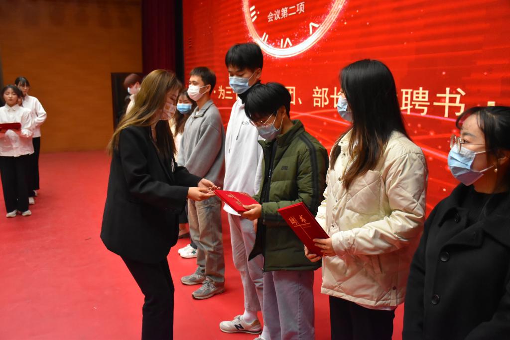 会议伊始,由团委书记张雷、团委副书记全佳豪、学生会主席王艺臻为第三十三届主席团及部长颁发聘书。在此之后由第三十三届团委副书记陈艳丽、现任团委副书记全佳豪、学生会主席王及部长、干事代表分别做了发言,他们均表示要本着“为同学服务”的宗旨,严于律己、以身作则,把学院所急、同学所需、团委学生会所能作为工作出发点、落脚点,从而共同开创团委学生会的新局面。