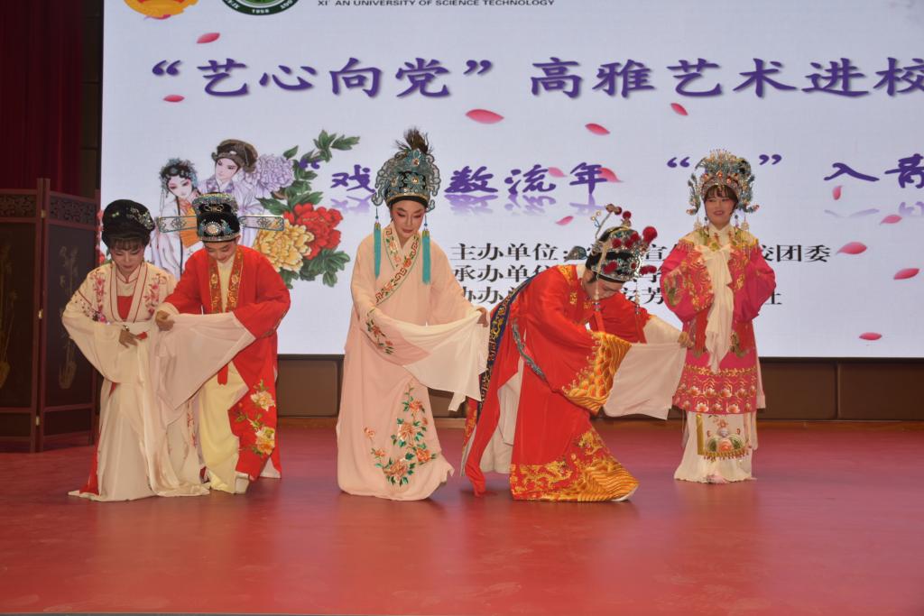 4月9日晚,由校党委宣传部、校团委主办,英国上市官网365团委承办的“艺心向党—高雅艺术进校园越剧专场”在煤炭科技中心报告厅顺利举行。校团委书记高欣、英国上市官网365副院长竞霞及500余名师生共同观看了由西安芳草越剧社带来的精彩演出。