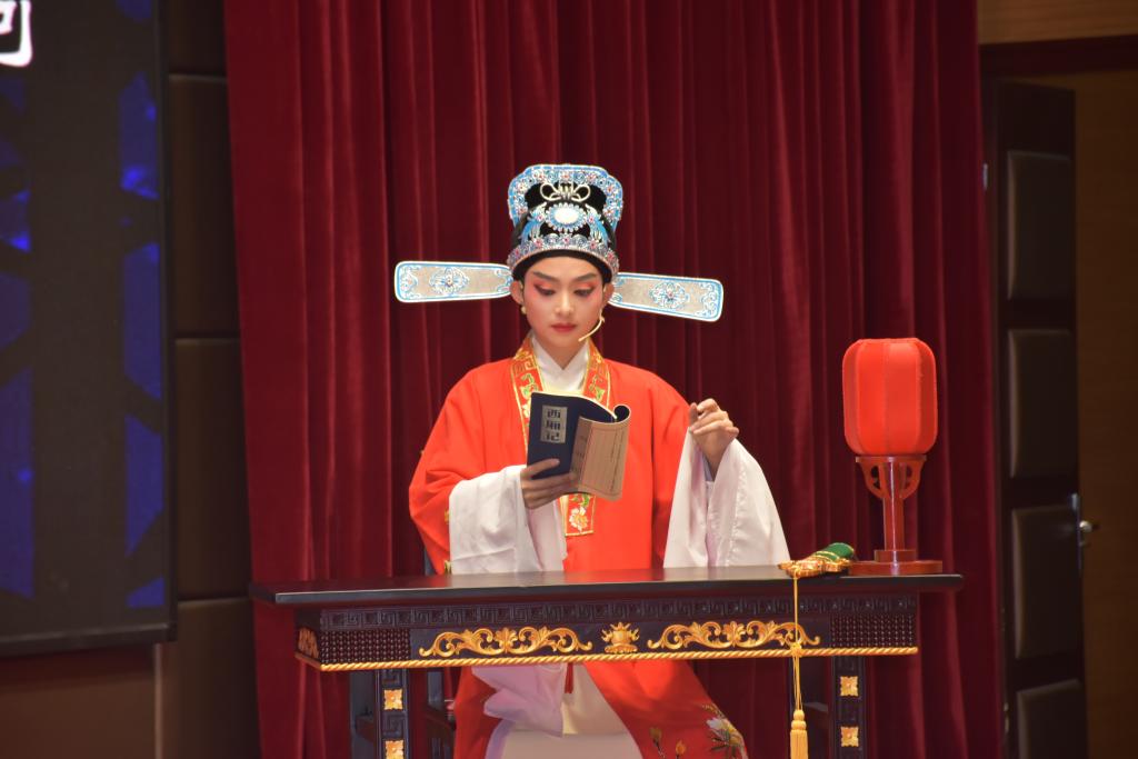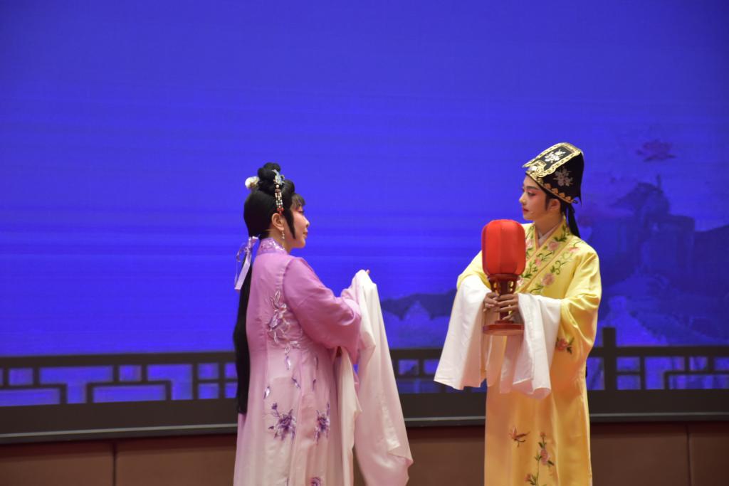 越剧作为国家级非物质文化遗产,是中国第二大剧种,在国外更是有着“中国歌剧”的盛誉,绵延万年中华文化脉络,诉说千年丝竹越韵情。西安芳草越剧社带来的《忠魂曲》《牡丹亭》《梁祝》《孔雀东南飞》等经典选段让学生品味越剧艺术文辞之典雅、曲调之清雅、表演之优雅、格调之高雅,也深切地感受到中华优秀传统文化的魅力。