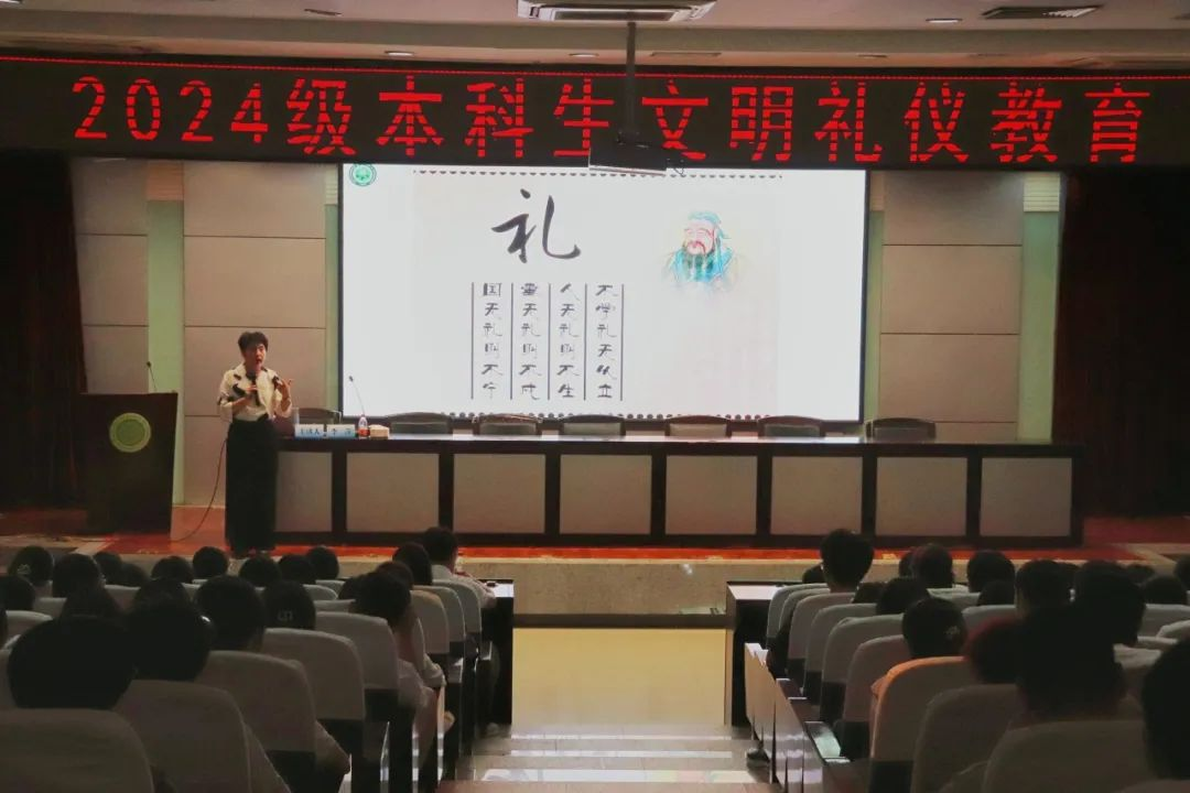 为了规范2024级本科生文明礼仪,帮助同学们更好的处理学习生活中的相关问题。2024年9月22日由党委学工部、英国上市官网365联合举办的2024级本科生文明礼仪教育课程在图书馆二楼报告厅开讲。本次课程由李萍主讲,2024级辅导员刘钊主持,2024级全体学生参与。