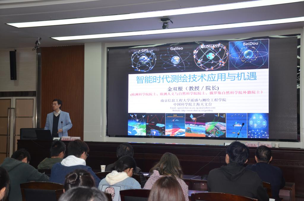 报告会期间,金双根教授主要围绕目前测绘行业的背景与时代发展特点,通过国内外研究平台的对比,说明了国内现有平台研究更为便利,科研发展环境更佳。金教授从回国以来的工作与学术研究、南京信息工程大学遥感与测绘工程学院的发展和遥感测绘技术与应用前景三个方面进行了讲解。简述了在卫星导航、卫星遥感和空间行星探测等多个技术领域的研究,重点介绍了GNSS反演遥感和GNSS反射测量的提出背景和研究现状,并从人员组成、研究团队、研究项目与教学平台等方面介绍了其学院近几年的快速发展。最后,介绍了遥感测绘观测技术、多源技术融合以及GNSS卫星导航与5G等前端测绘技术与应用。
