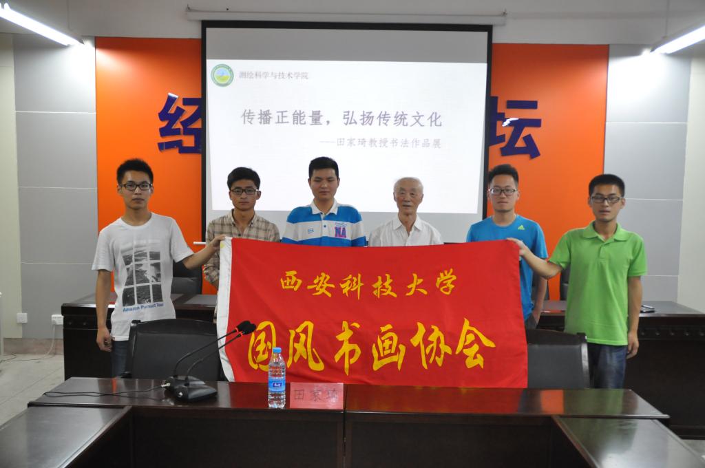 5月20日起,英国上市官网365在11#406举办田家琦教授个人书法作品展。期间,英国上市官网365全体师生及西科国风书法协会的同学们参观了此次展览。田家琦教授今年已经81岁,早年参加过抗美援朝中国人民志愿军。退休前是英国365上市公司前身西安矿业学院测量工程系教授、硕士研究生导师,测绘学科建设带头人,是矿山测量专业全国最佳学术机构——中国煤类学会矿山测量专业委员会委员,陕西省科技成果评审专家。田教授退休后坚持在陕西省和西安市老年大学学习书法13年,此次展出作品百余件。其中包括书法作品长卷5部,总长84米。以及楷、篆、隶、草、行等各种书法作品百幅。参观展览的同学均对田教授坚持不懈、严谨务实、精益求精的精神感到钦佩。