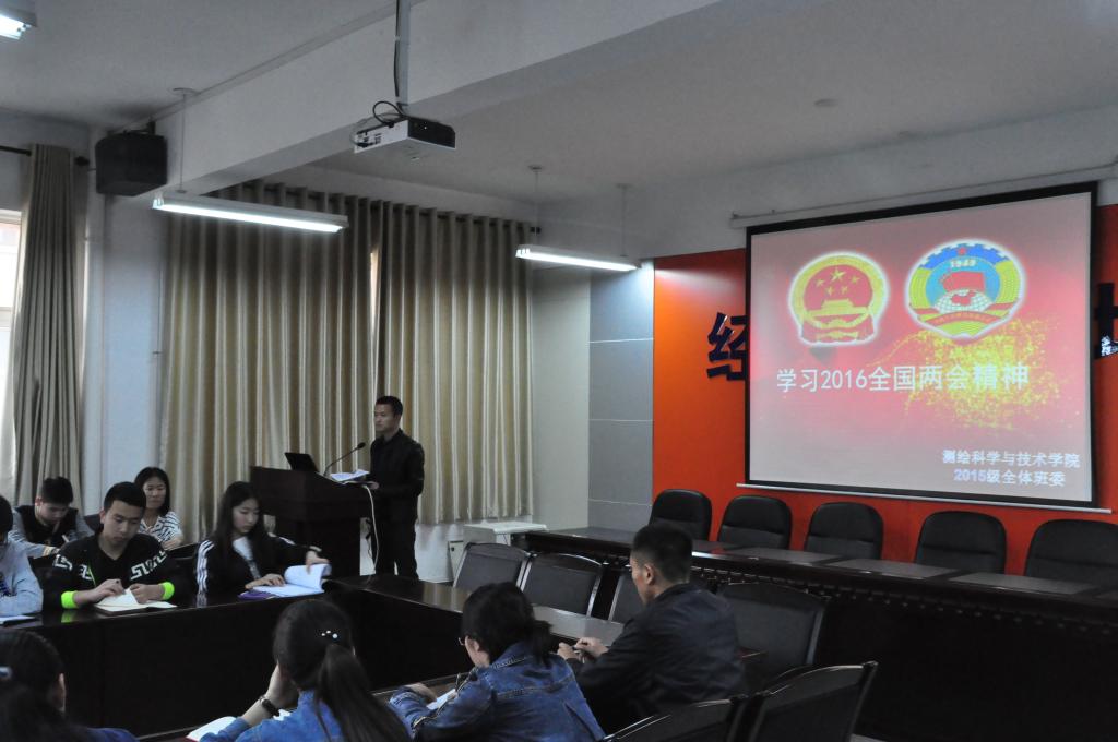 4月12日下午18点英国上市官网3652015级全体班委在11教317会议室召开了以“学习2016两会精神”为主题的交流会,会上传达学习了全国人大十二届四次会议和全国政协十二届四次会议精神。会议由2015级辅导员张雷老师主持。