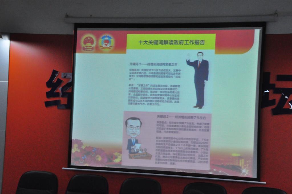 张雷老师从两会的基本知识、2016年政府工作报告解读、2016年两会热点解读做了细致阐述。会议最后,张雷老师表示国家的发展离不开我们每一个人的努力和付出,个人的发展需要国家提供环境和保障,两者相辅相成,不可分割。作为当代大学生,肩负祖国发展前进的伟大使命,必须深入贯彻落实两会精神,同学们应该在学习与讨论中共同进步,力求做一名具备良好思想觉悟的新一代合格大学生。