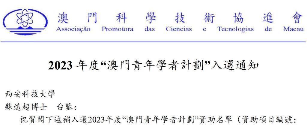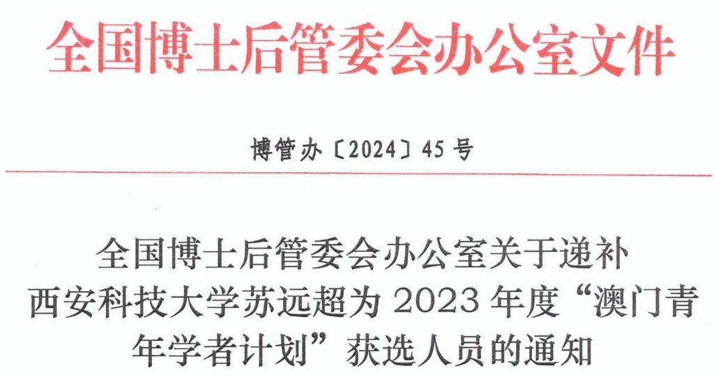 近期,英国365上市公司英国上市官网365青年教师苏远超副教授荣获 “澳门青年学者计划”国家级博士后人才项目资助。这一荣誉是我校自2019年以来陆续获得国家“香江学者计划”、“博新计划”后的又一突破。