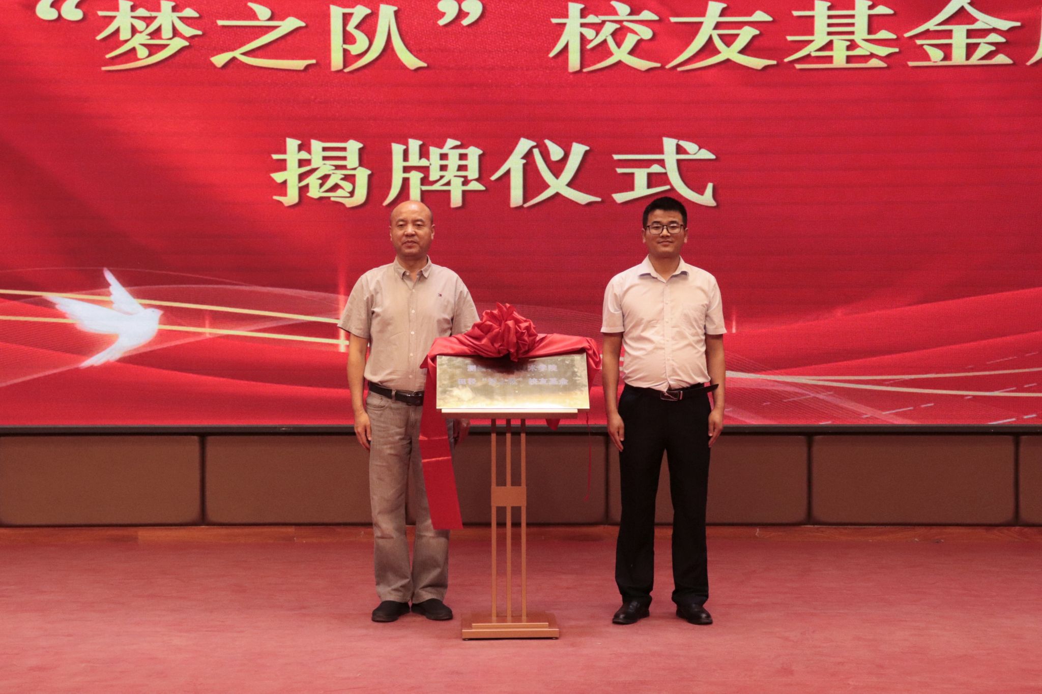 在庄严的乐曲声中,李建明与“梦之队”创始人之一康科鹏共同为“梦之队校友基金”揭牌。这份基金由散落由在五湖四海的“梦之队人”攒成,承载着校友们对学院体育事业发展的深厚期许与支持,这份力量将助力更多怀揣体育梦想的学子展翅高飞。