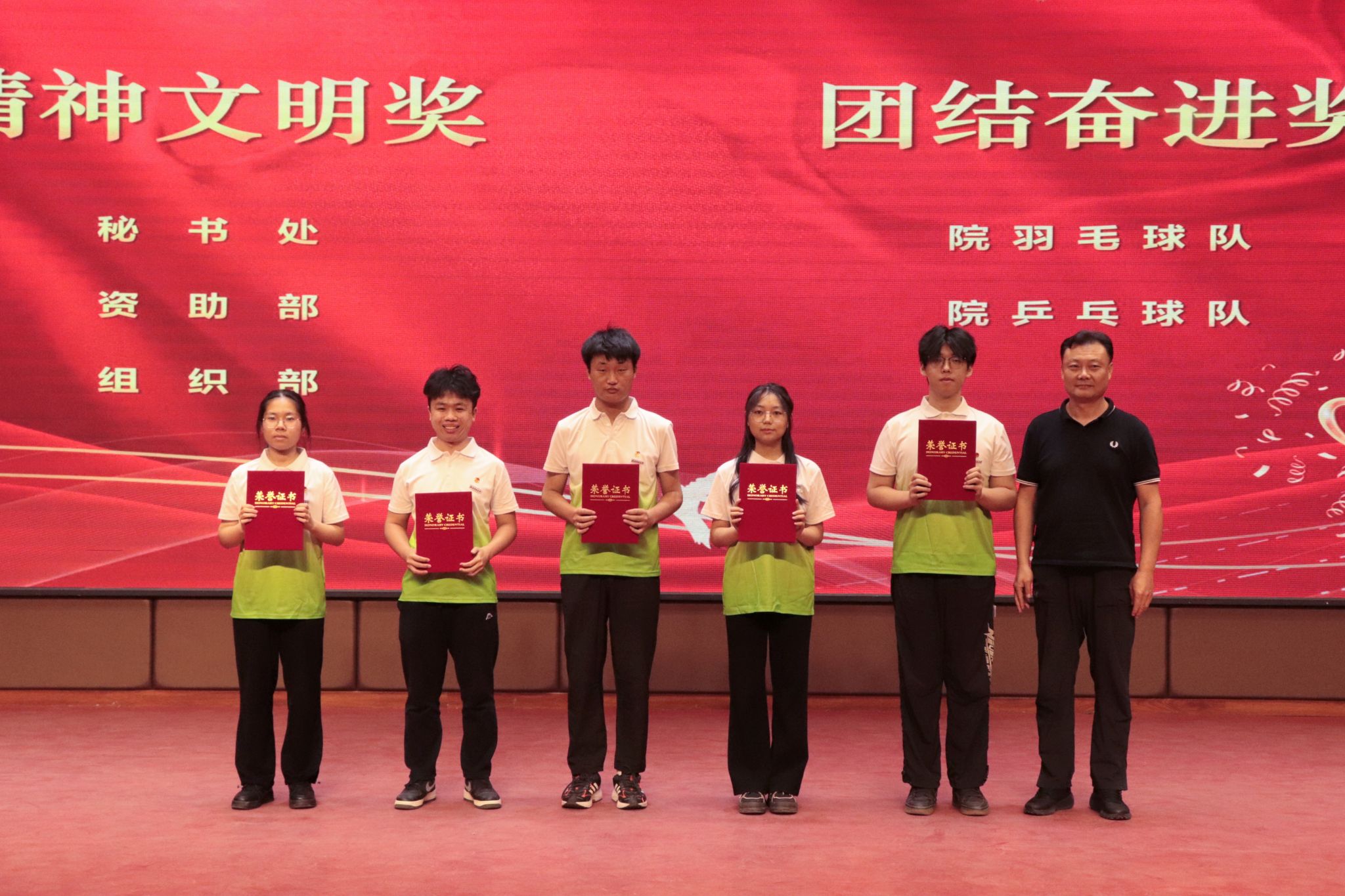 大会第三项,英国上市官网365院长李朋飞宣读表彰文件,出席会议的领导和老师们分别对体育工作优秀部门、优秀学生干部、优秀个人、团体突出贡献奖、个人突出贡献、优秀运动员、精神文明奖、团结奋进奖、梦之队擎梦领跑者、撷梦之星、传梦火炬手、逐梦先锋、燃梦微光等先进集体和个人进行了表彰。