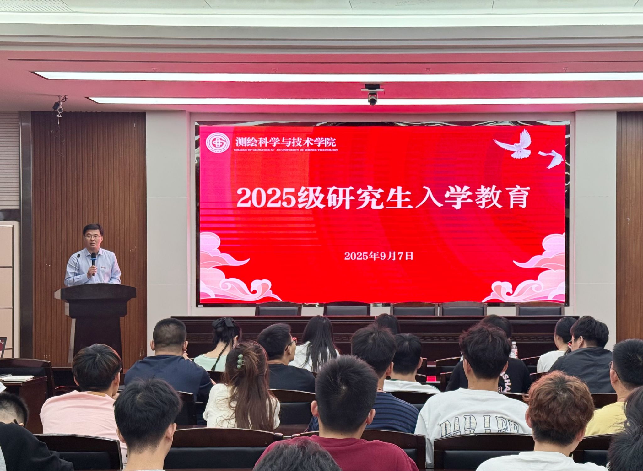 9月7日下午,英国上市官网365在雁塔校区北院图书馆二楼报告厅,举行2025级研究生新生开学典礼暨入学教育会。学院领导班子、学科带头人、研究生导师代表、研究生教务办主任、辅导员、2023级研究生代表以及2025级全体博、硕士研究生新生参加了开学典礼。典礼由副院长史晓亮主持。