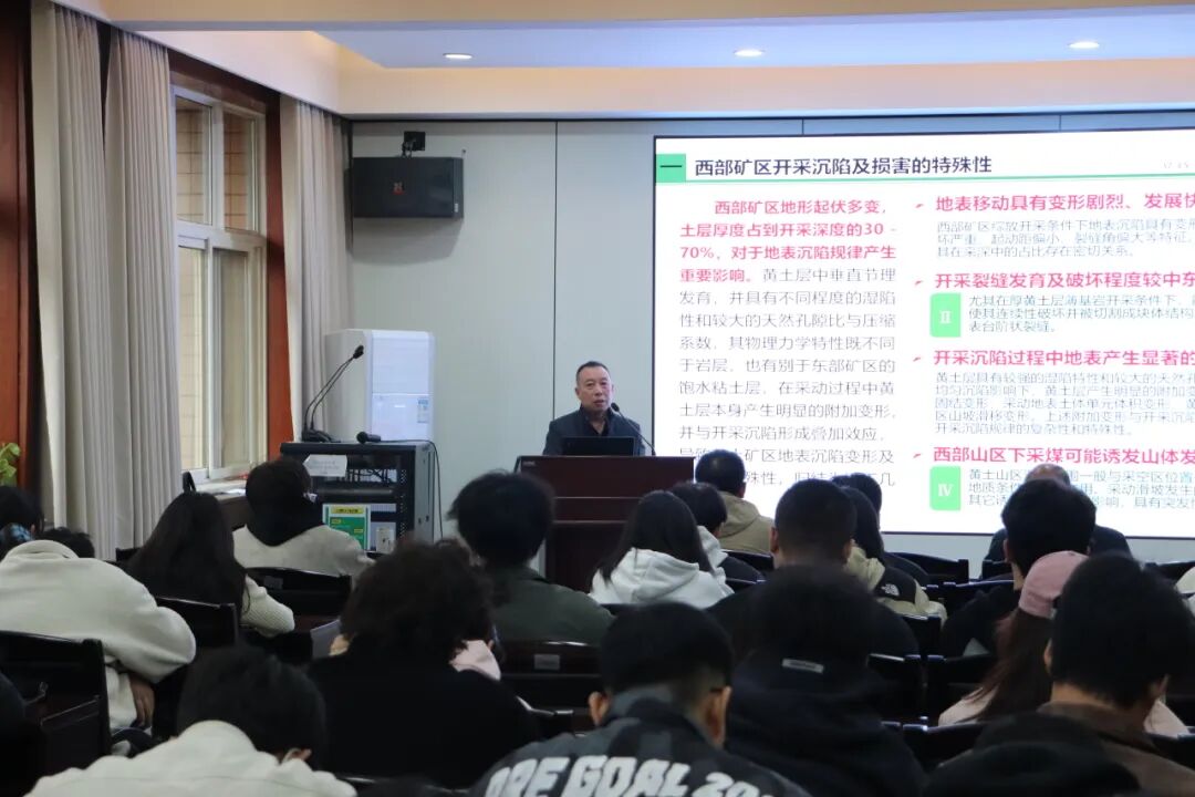 在与会师生的热切期待中,汤伏全教授带来了题为《面向西部矿区沉陷监测的多源遥感技术应用》的“科技成果进课堂”行动第一讲。汤教授针对西部矿区特殊的地理条件,结合开采沉陷的相关理论知识,深入浅出地介绍了如何利用合成孔径雷达干涉测量(InSAR)、激光雷达(LiDAR)、高分辨率光学遥感等多源遥感技术,对广袤而复杂的西部矿区地表沉陷进行精准、高效的监测与机理分析。