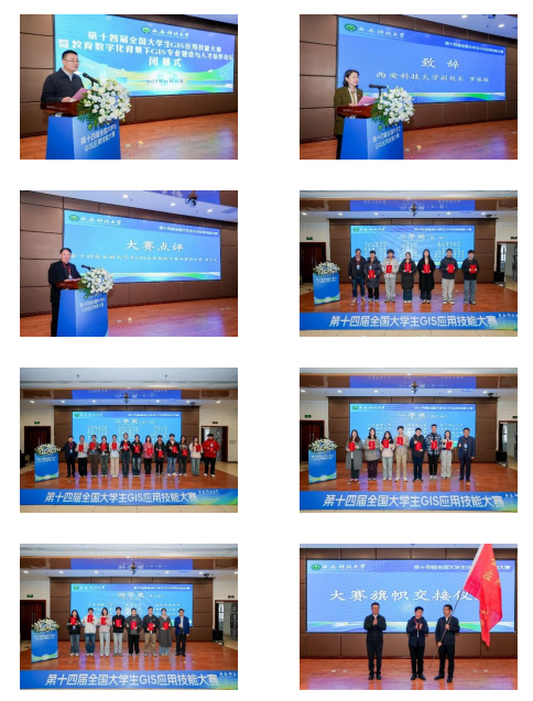 闭幕式最后进行了大赛交接仪式,第十五届全国大学生GIS应用技能大赛将于2026年在信阳师范大学举行。信阳师范大学地理科学学院院长颜俊介绍了学校情况,并向全体与会者发出了热情的邀请。至此,第十四届全国大学生GIS应用技能大赛圆满闭幕。