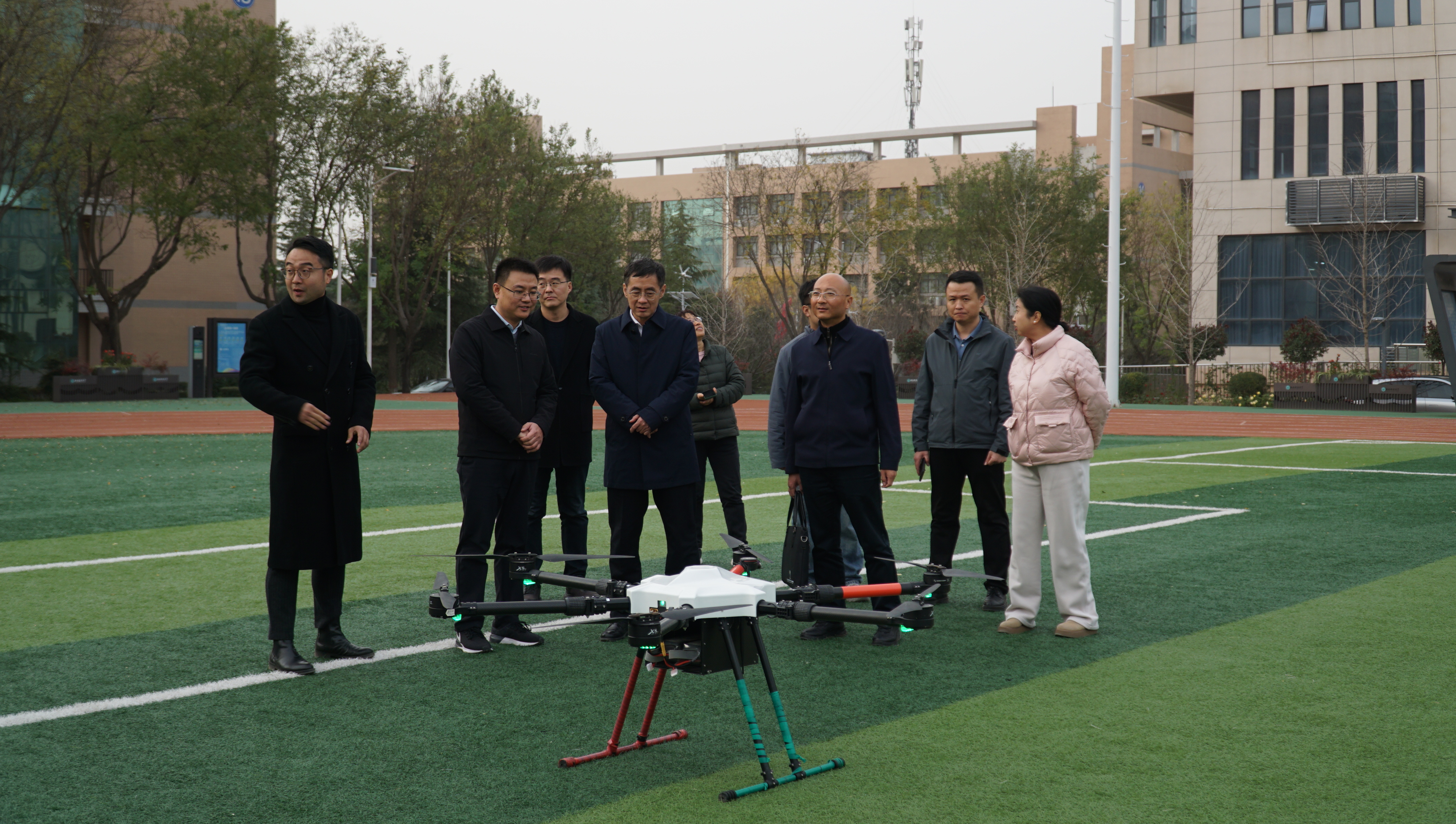 副校长李迎波深入了解各行业无人机应用现状,与学子们共同体验无人机航拍,在亲切交流中拉近师生距离,为科创热情注入强劲动力。