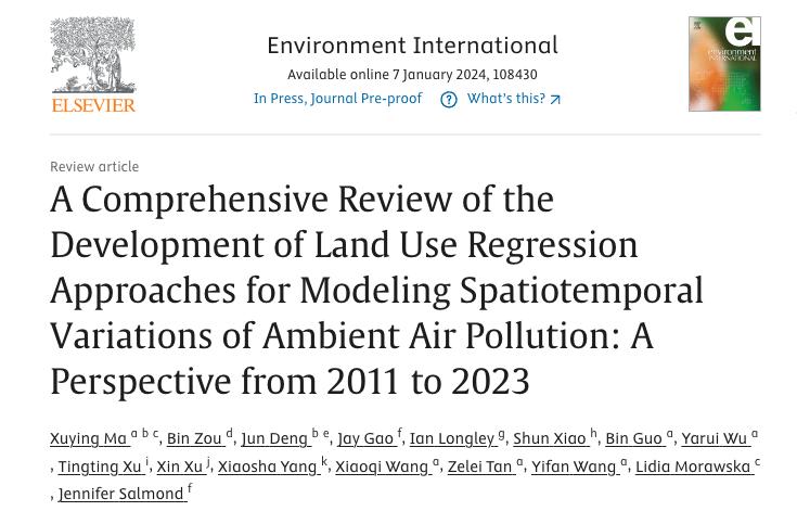 近日,英国365上市公司、昆士兰科技大学(澳大利亚)、中南大学和奥克兰大学 (新西兰)等11家单位联合在国际环境领域顶级期刊Environment International(中科院一区Top,IF=11.8)发表了题为“A Comprehensive Review of the Development of Land Use Regression Approaches for Modeling Spatiotemporal Variations of Ambient Air Pollution: A Perspective from 2011 to 2023”的论文。