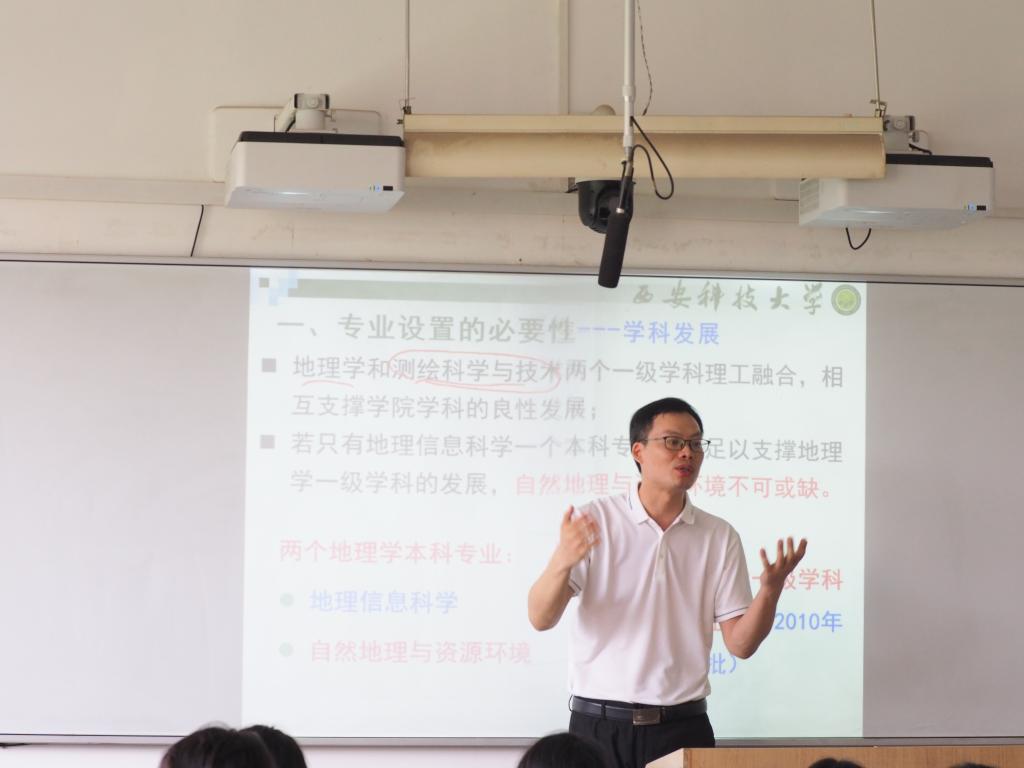 副院长史晓亮、竞霞,地理学学科带头人陈秋计、测绘工程系主任武继峰、地理信息科学系主任张东海、遥感科学与技术系主任刘英、自然地理与资源环境系主任耿广坡及教师代表马雄伟分别针对各专业学生介绍了专业发展历程、发展现状、学科前言以及专业的师资力量、科研团队、人才培养方案等,